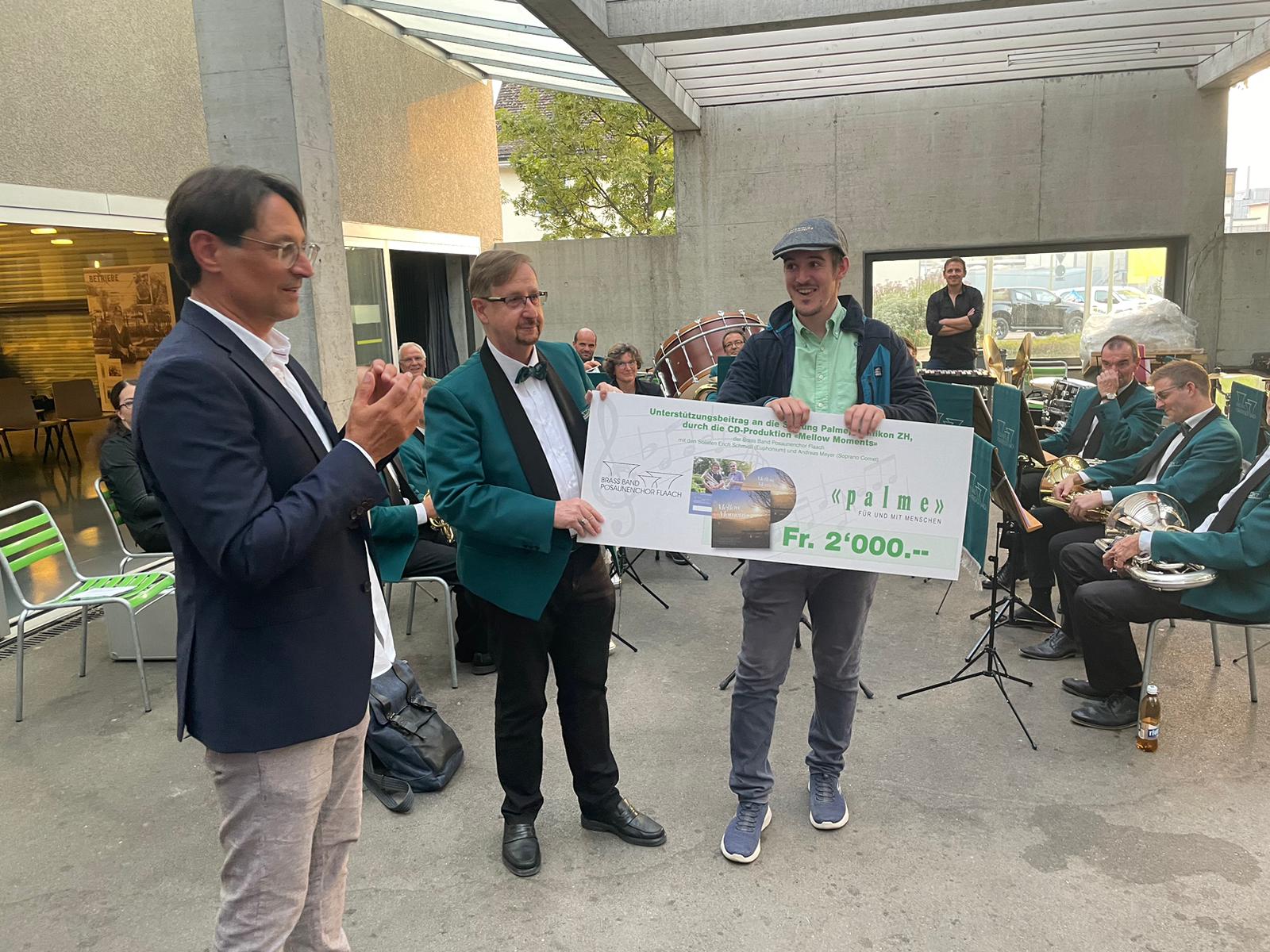 Im Rahmen eines Platzkonzerts überbrachten wir am 29. September der Stiftung «Zur Palme» in Pfäffikon einen grossen Check