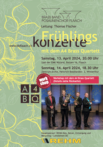 Dank unseren Gästen - dem A4-Brass-Quartett aus England - wurden die Frühlingskonzerte 2024 in Flaach und Winterthur zu einem unvergesslichen Erlebnis!