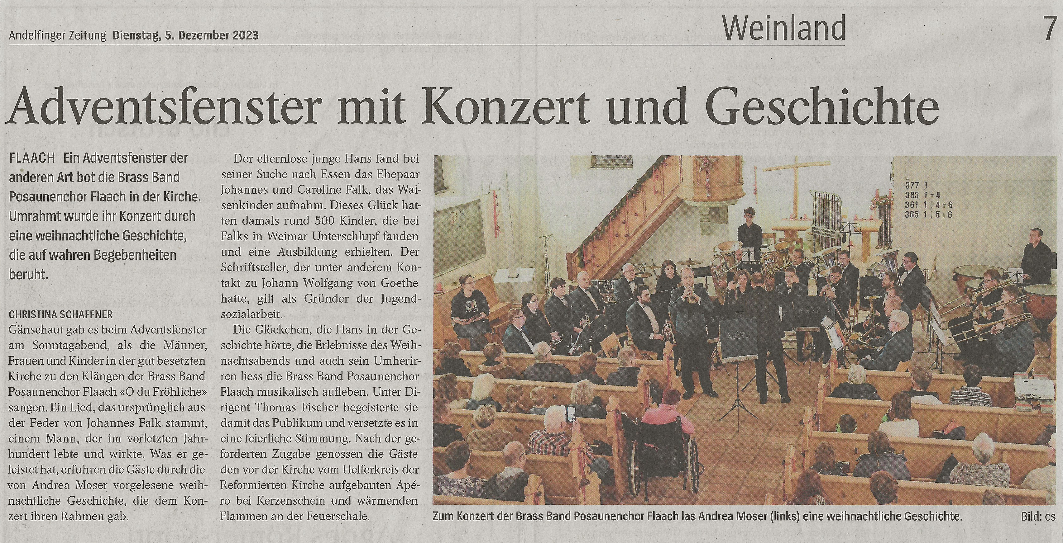 Konzertbericht der Andelfinger Zeitung zum Konzert in der Kirche Flaach