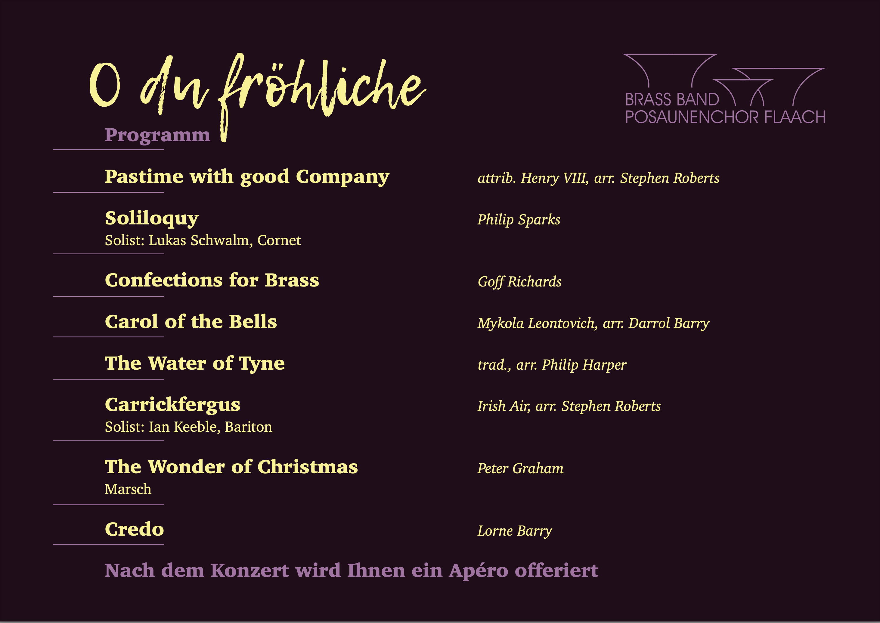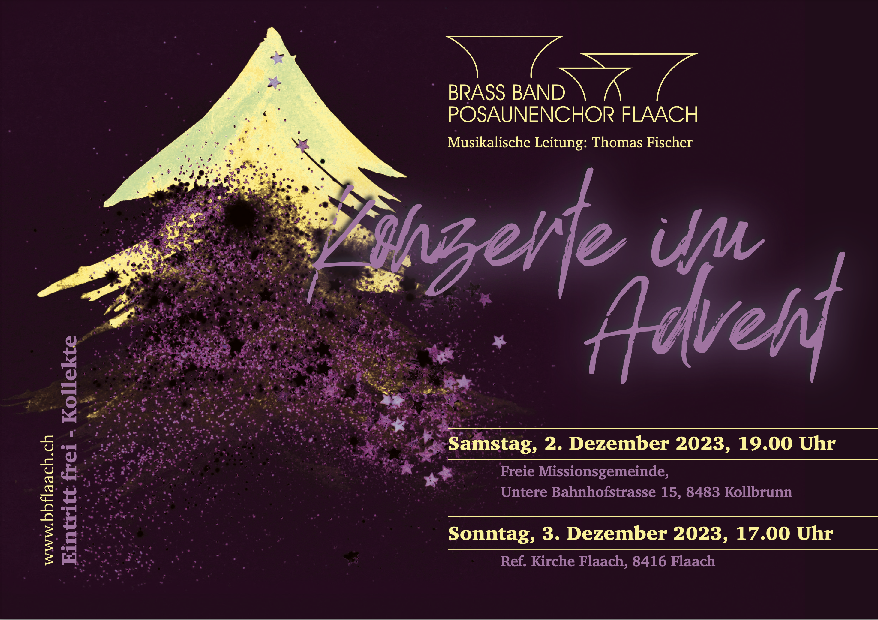 Samstag, 2. Dezember 2023, 19.00 Uhr, Freie Missionsgemeinde, Unt. Bahnhofstrasse 15, 8483 KollbrunnSonntag, 3. Dezember 2023, 17.00 Uhr, ref. Kirche, Flaach